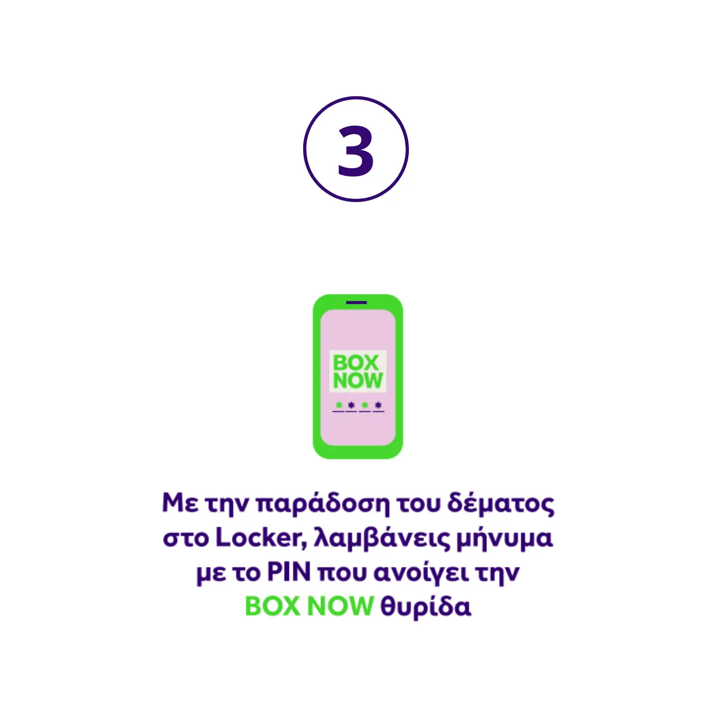 Πληκτρολογώντας το PIN, που λαμβάνεις με SMS, ανοίγει η θυρίδα που περιέχει το δέμα σου και μπορείς να παραλάβεις ό,τι ώρα θες χωρίς περιττές αναμονές!