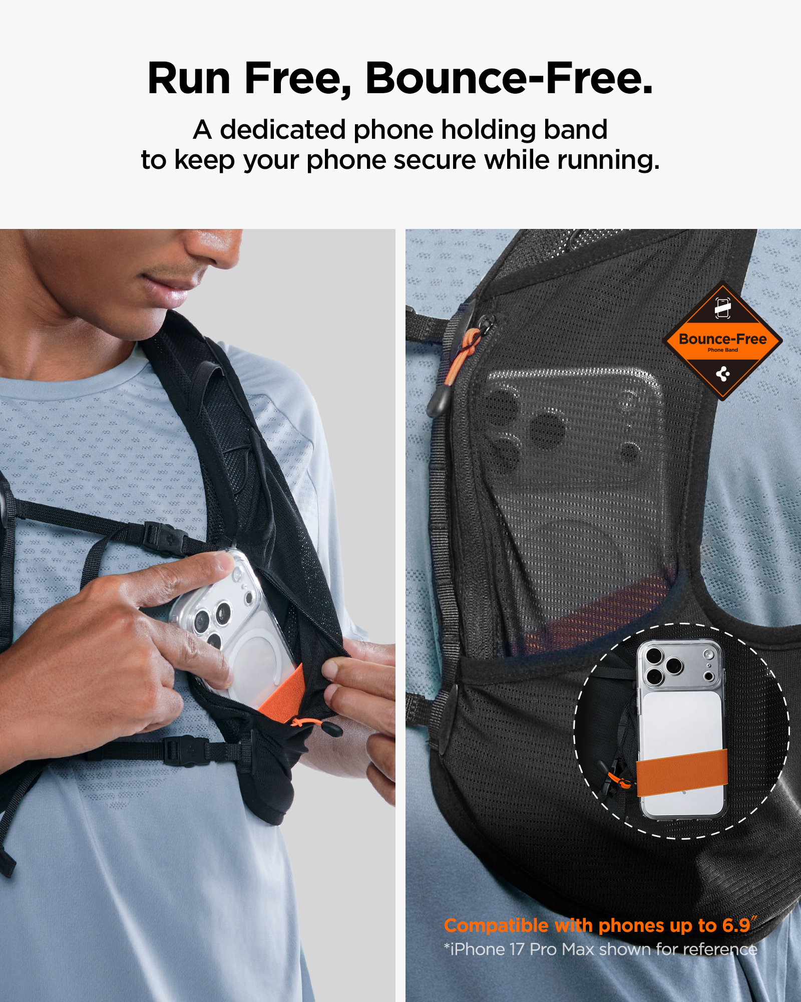 Ρυθμιζόμενη Εφαρμογή: Οι ρυθμιζόμενοι ιμάντες επιτρέπουν την ακριβή προσαρμογή στο σώμα (περιφέρεια στήθους 90 – 110 cm), εξαλείφοντας τις ενοχλητικές αναπηδήσεις κατά το τρέξιμο.