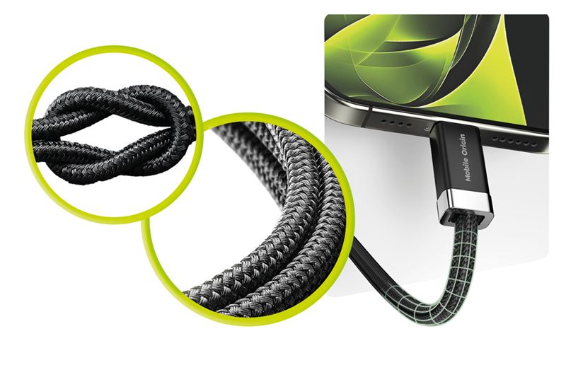 Υψηλή Ανθεκτικότητα: Η εξωτερική επένδυση από ενισχυμένο πλεκτό ύφασμα προστατεύει το καλώδιο από τσακίσεις, σπασίματα και φθορές από τη χρήση.4