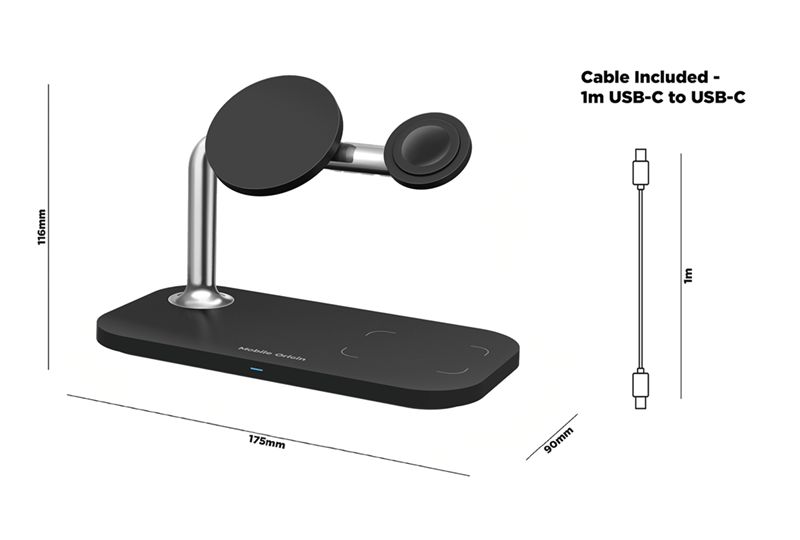 • Charges 3 devices simultaneously – iPhone, Apple Watch and Airpods