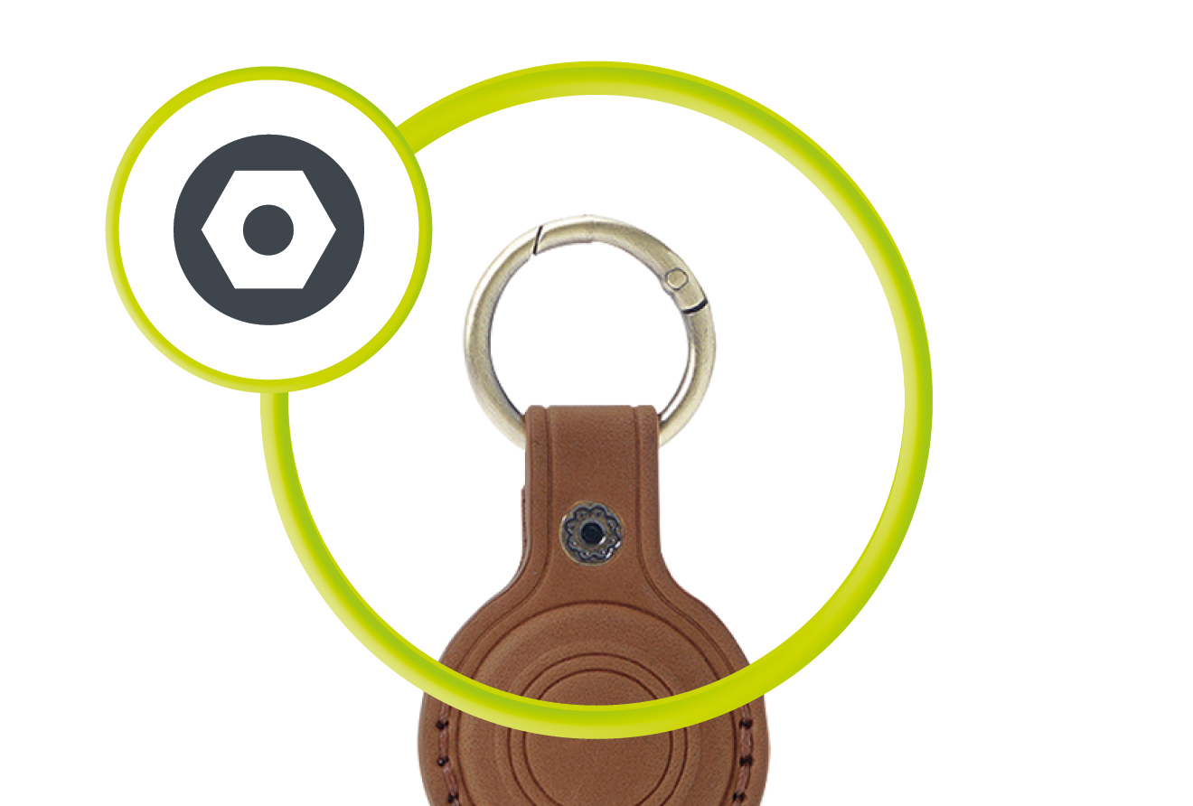 Στιβαρό Μεταλλικό Κούμπωμα: Το ενσωματωμένο snap system εξασφαλίζει ότι το AirTag παραμένει σταθερά στη θέση του, αποτρέποντας την τυχαία πτώση, ενώ επιτρέπει την ταχύτατη τοποθέτηση σε δευτερόλεπτα.
