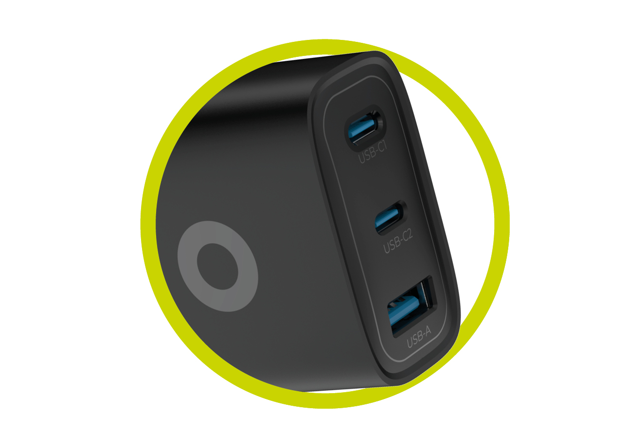 Τριπλή Ταυτόχρονη Φόρτιση: Εξοπλισμένος με 2 θύρες USB-C και 1 θύρα USB-A, σας επιτρέπει να φορτίζετε ταυτόχρονα το κινητό, το tablet και τα ακουστικά σας. Η έξυπνη κατανομή ισχύος προστατεύει τις επαφές των συσκευών σας από απότομες διακυμάνσεις τάσης.