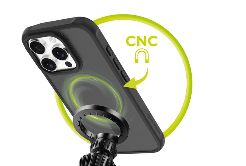 The magnets are placed with maximum precision—the case attaches to the charger with a clear click and holds firmly even when moving. It works with magnetic car mounts, wallets, and stands.