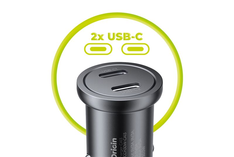 Mobile Origin Metal Car Charger 30W, CA13 – 2x USB-C
