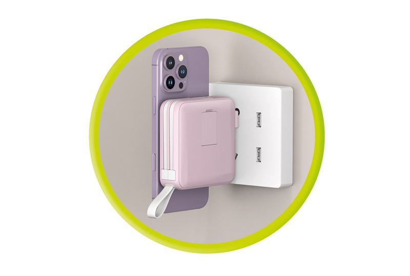 Mobile Origin Powerbank & Travel Charger Lightning/USB-C Cable MagSafe/AW/iPhone Compatible pink (PBT-03L-PNK)