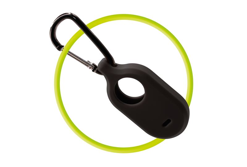 A precise cutout ensures that the sound signal can transmit without interruption. The case is in a phosphorescent green variant that glows in the dark, making it easier to find in low-light situations or when placed in a backpack. Additionally, the package includes a practical carabiner for convenient attachment to keys, backpacks, or luggage.¨