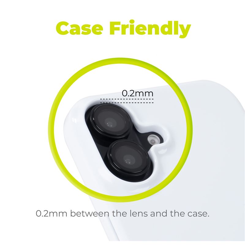 Case Friendly Design: Our lens protector ensures a seamless fit with your phone case, offering robust protection without compromising style or function. With a slim 0.2mm gap, your lens remains shielded while staying compatible with most cases