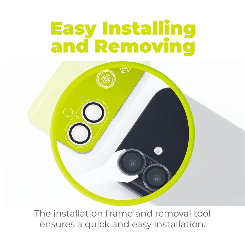 Install frame with 2x Sapphire Lens guards iPhone 16 / 16 Plus