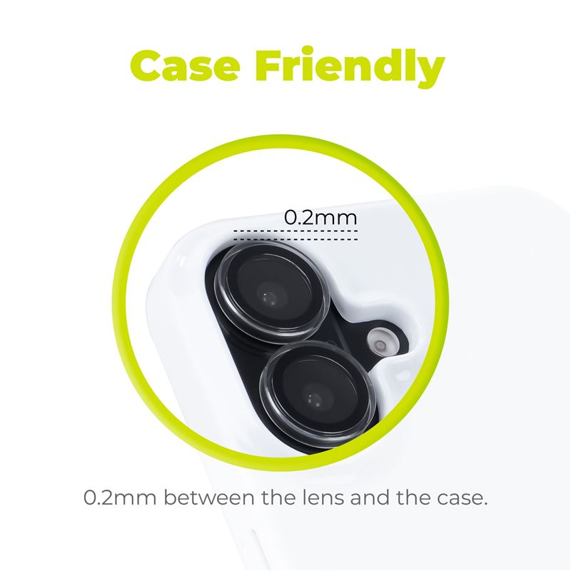 Case Friendly Design: Our lens protector ensures a seamless fit with your phone case, offering robust protection without compromising style or function. With a slim 0.2mm gap, your lens remains shielded while staying compatible with most cases