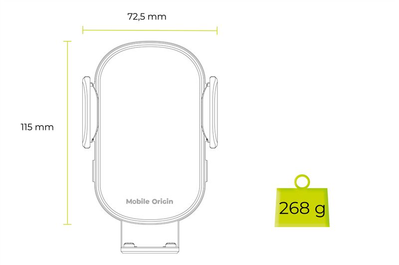 Just a touch: Press the button on the side — the two arms open, place your Qi-compatible phone, and charging starts immediately. The arms automatically lock securely. Press again to release – designed for your convenience.