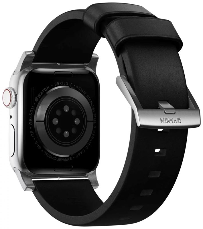 Nomad Modern Band – black leather, silver hardware – AW 46mm/49mm