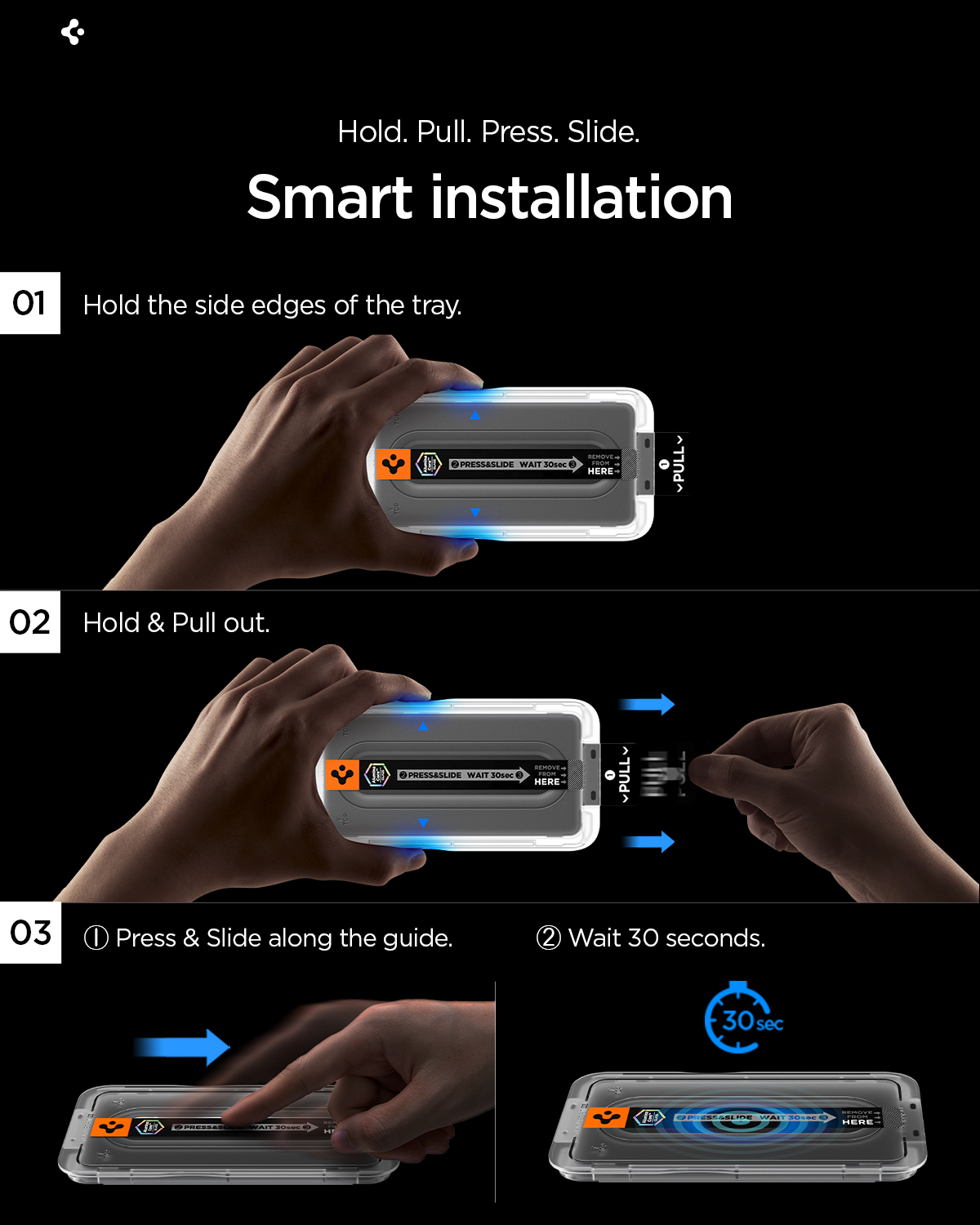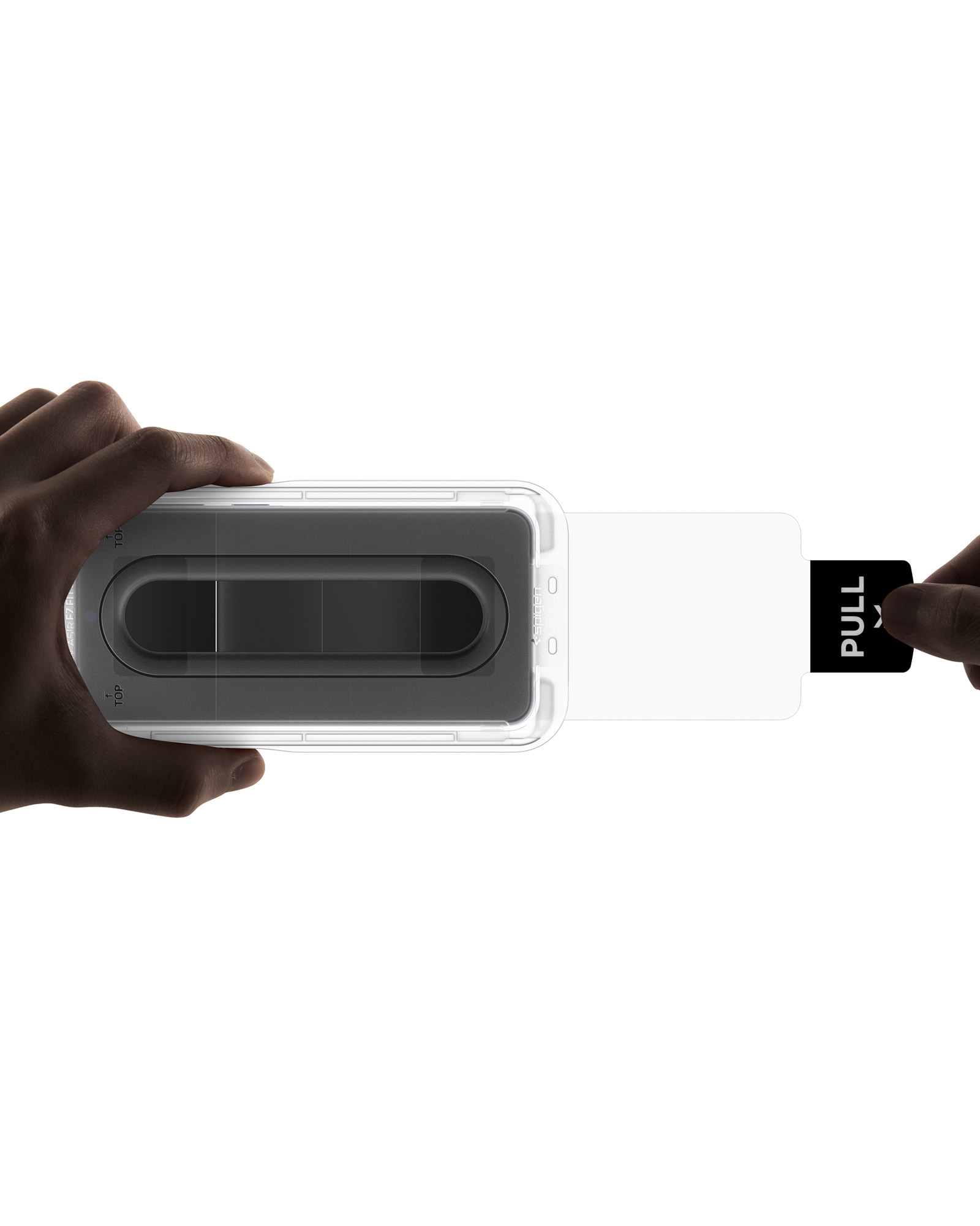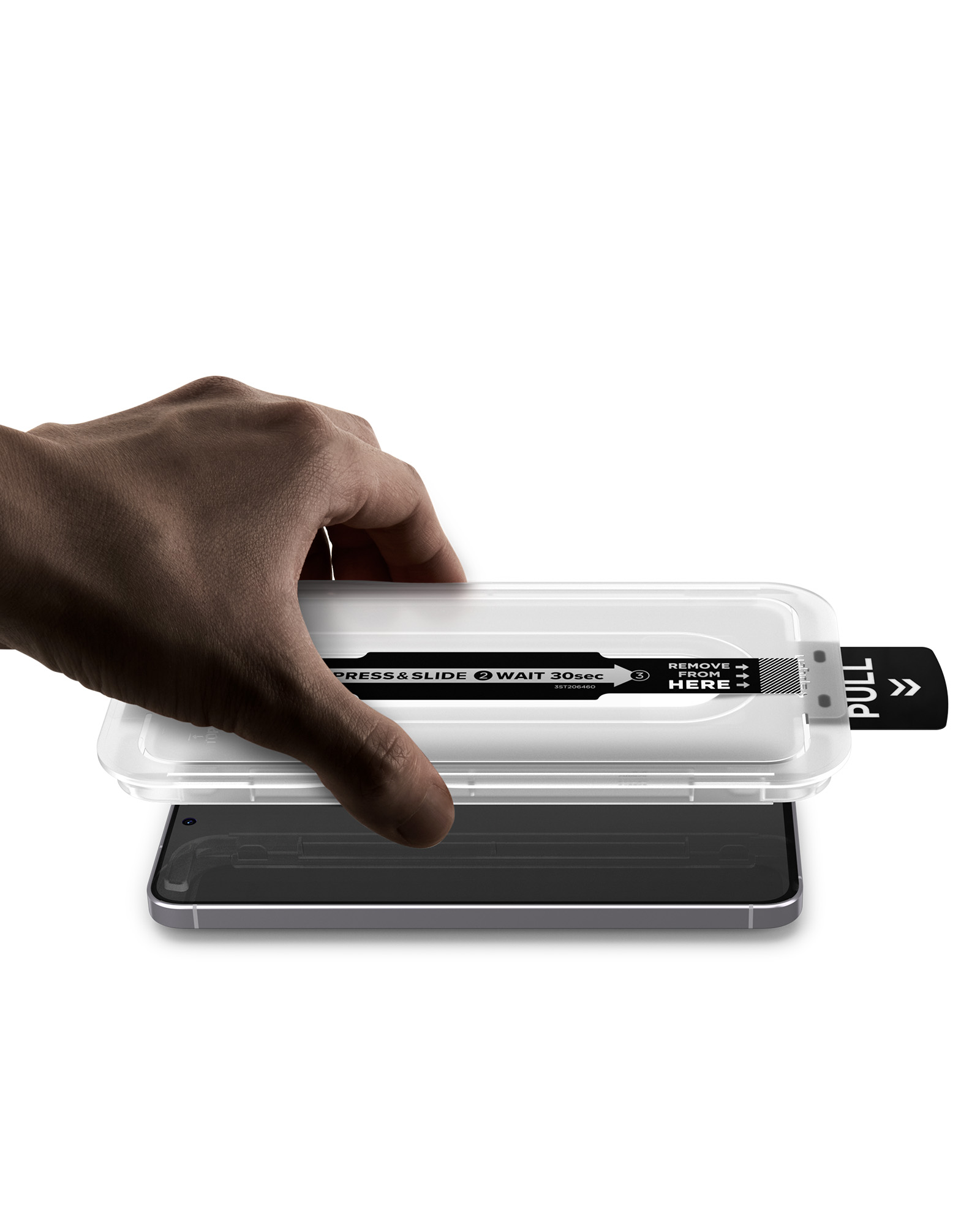 Σύστημα EZ Fit Pro: Η συσκευασία περιλαμβάνει έναν ειδικό οδηγό (πλαίσιο) που “κουμπώνει” πάνω στη συσκευή. Το γυαλί είναι ήδη προ-τοποθετημένο στον οδηγό, διασφαλίζοντας ότι θα εφαρμόσει ακριβώς στο κέντρο της οθόνης με την πρώτη προσπάθεια.