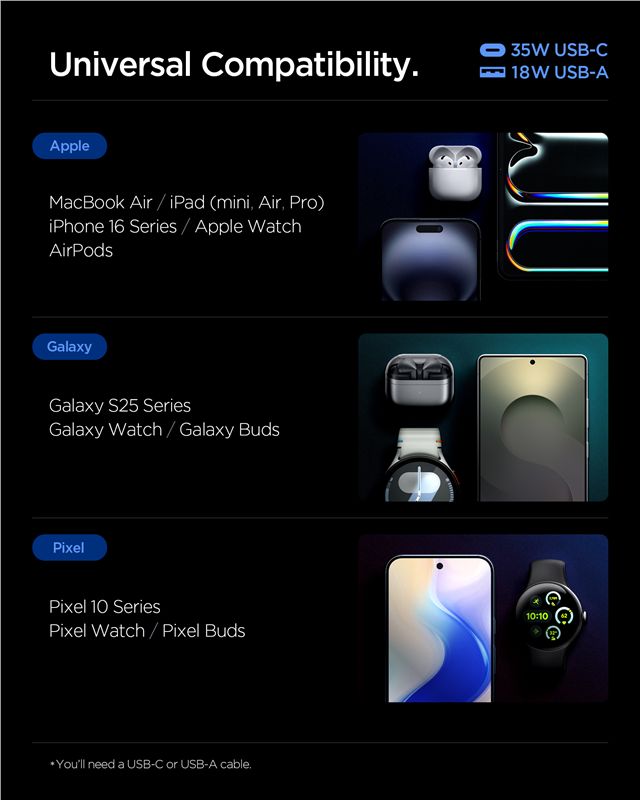 - 35W Maximum Output: Fast and reliable charging for your devices.