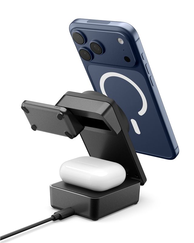 Αυτός ο πανίσχυρος σταθμός φόρτισης 3-σε-1 είναι σχεδιασμένος για να τροφοδοτεί ταυτόχρονα το smartphone, το smartwatch και τα ακουστικά σας, προσφέροντας μια τακτοποιημένη και αποδοτική λύση για το γραφείο ή το κομοδίνο σας. Με αναδιπλούμενο σχεδιασμό και υποστήριξη του τελευταίου προτύπου Qi2.2, συνδυάζει την ταχύτητα με τη μέγιστη φορητότητα.