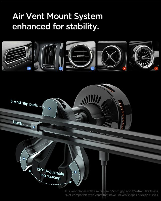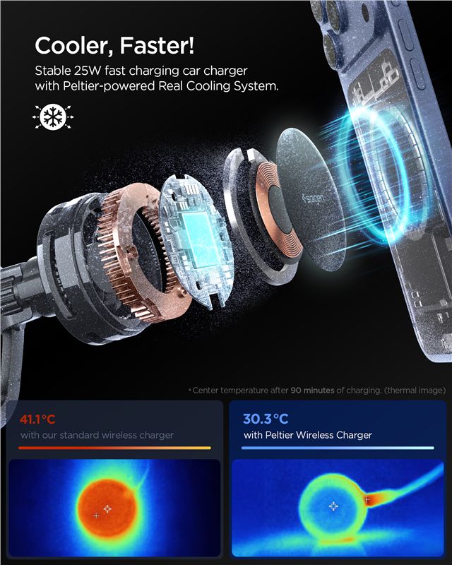 Spigen Essential MagSafe Peltier Wireless Car Charger EV25MFAQ Black – Air vent (ACP10511)