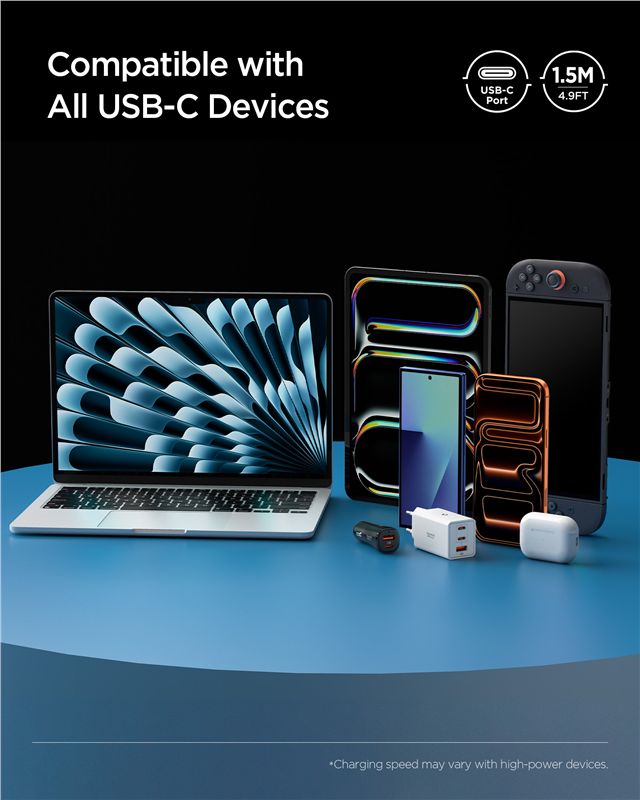 - Maximum power of 240W (USB Power Delivery): suitable for laptops, tablets, and phones with high power consumption.