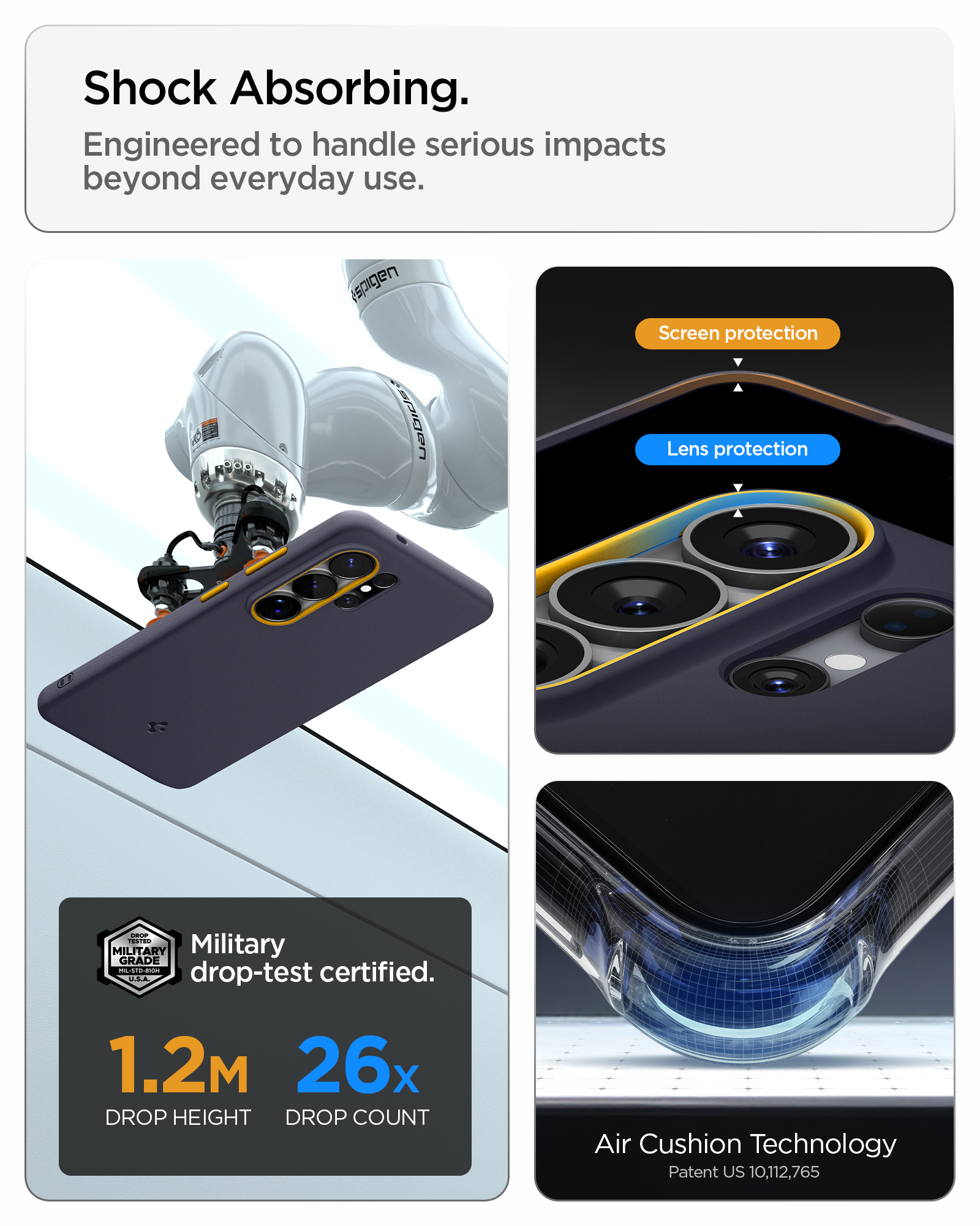 Τεχνολογία Air Cushion: Με πιστοποίηση στρατιωτικού επιπέδου, η θήκη διαθέτει αερόσακους στις γωνίες που απορροφούν τους κραδασμούς, προστατεύοντας το Galaxy S26 Ultra από κάθε απρόοπτη πτώση.