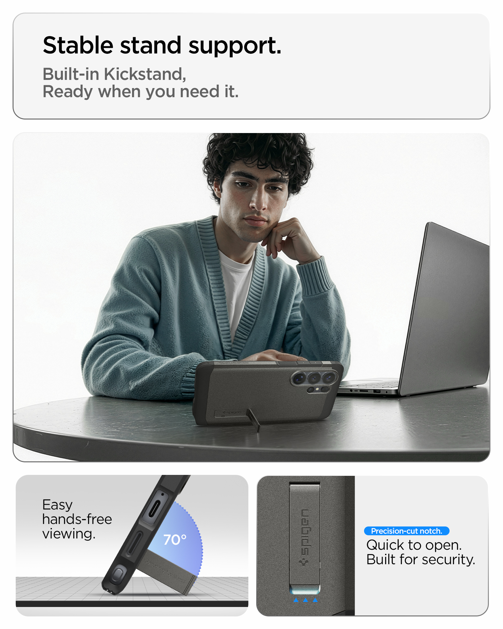 - Raised bezels lift screen and camera off flat surfaces