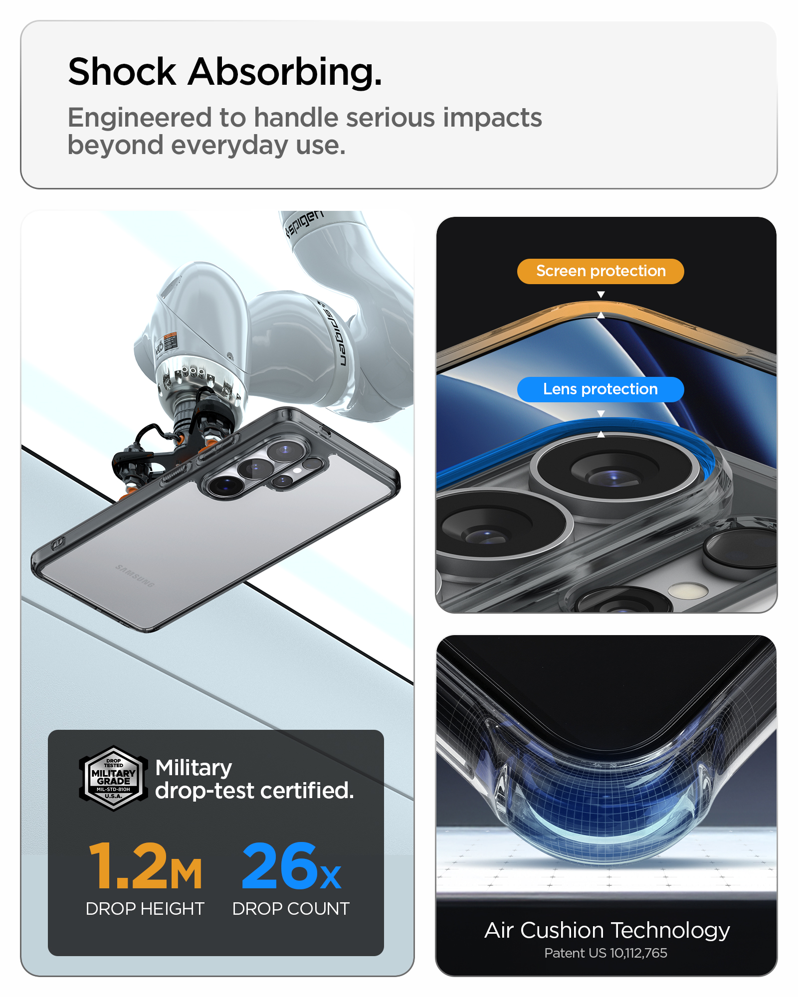 Τεχνολογία Air Cushion®: Οι γωνίες της θήκης είναι ενισχυμένες με αεροθαλάμους για να απορροφούν την ενέργεια της πρόσκρουσης σε περίπτωση πτώσης, διατηρώντας το S26 Ultra ανέπαφο.