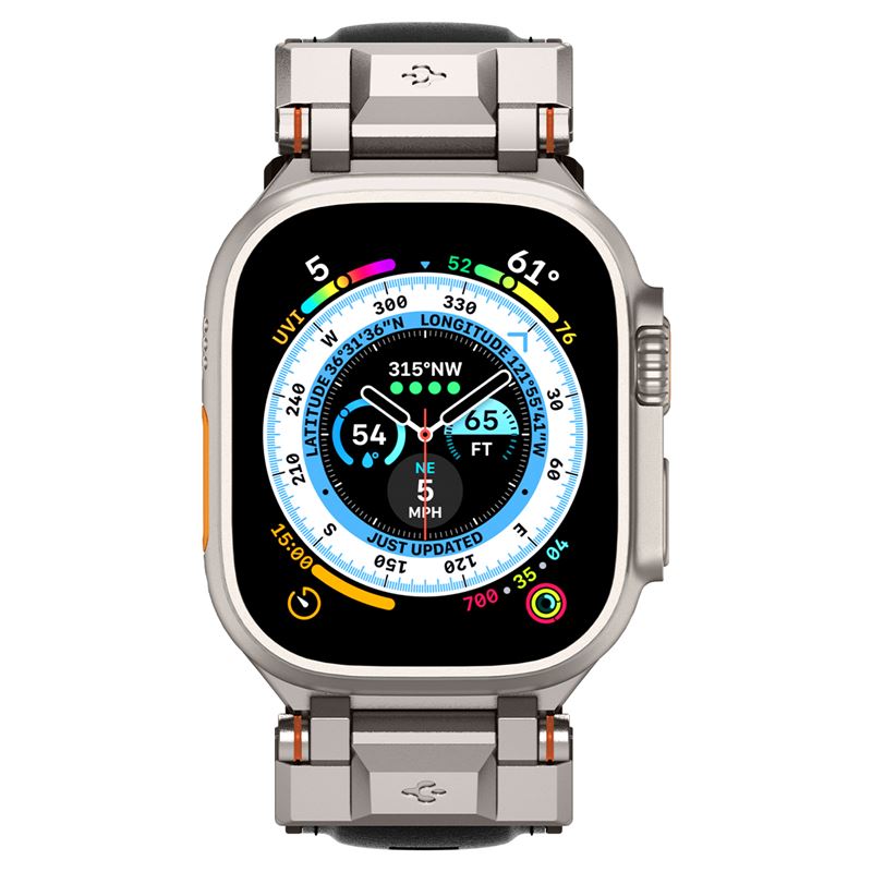 - Color-Matched metal connectors blend in with the Apple Watch Ultra’s titanium casing.
