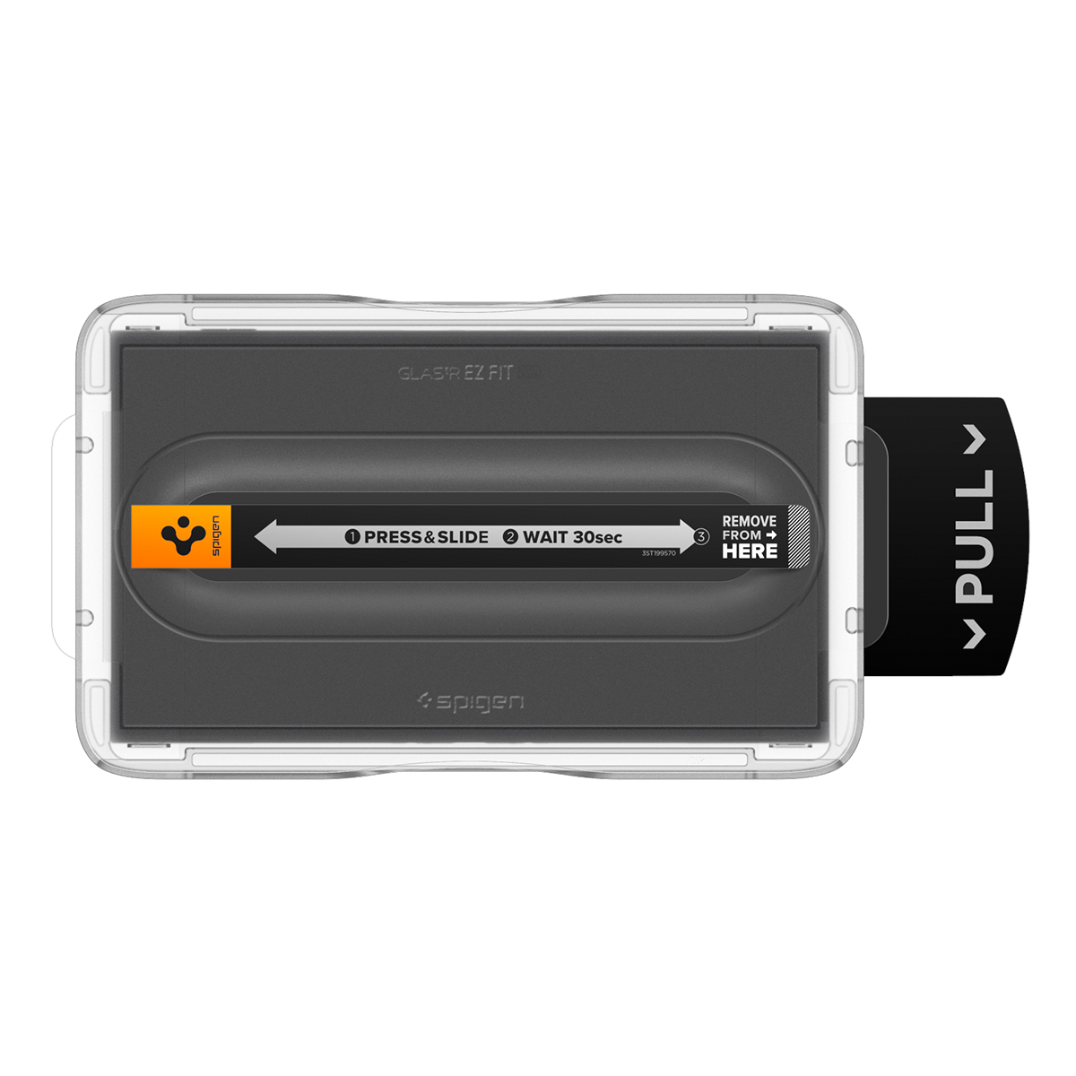 Καθόλου. Με το συμπεριλαμβανόμενο tray της Spigen, η τοποθέτηση γίνεται αυτόματα και με ακρίβεια, εξαλείφοντας το ρίσκο για λάθος ευθυγράμμιση ή φυσαλίδες.