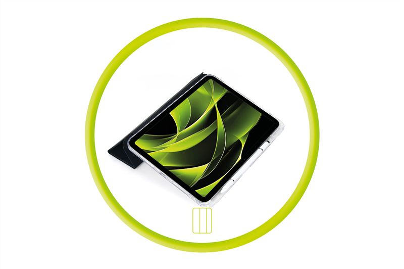 Tri-Fold Stand: Το μπροστινό κάλυμμα μετατρέπεται σε σταθερή βάση δύο γωνιών, προσφέροντας την ιδανική θέση για πληκτρολόγηση ή για παρακολούθηση περιεχομένου και βιντεοκλήσεις.