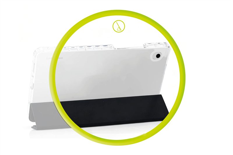 Μεταβλητή Βάση Στήριξης: Το μπροστινό κάλυμμα αναδιπλώνεται σε δύο θέσεις: μια εργονομική γωνία για άνετη πληκτρολόγηση και σημειώσεις, και μια πιο όρθια κλίση για την παρακολούθηση βίντεο ή συμμετοχή σε βιντεοκλήσεις.