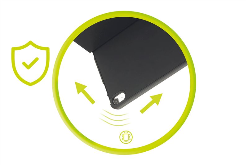 Λειτουργία Smart Auto Sleep/Wake: Η θήκη αναγνωρίζει αυτόματα το άνοιγμα και το κλείσιμο του καλύμματος, ενεργοποιώντας ή θέτοντας σε αναμονή το iPad σας, εξοικονομώντας σημαντικά την ενέργεια της μπαταρίας σας.