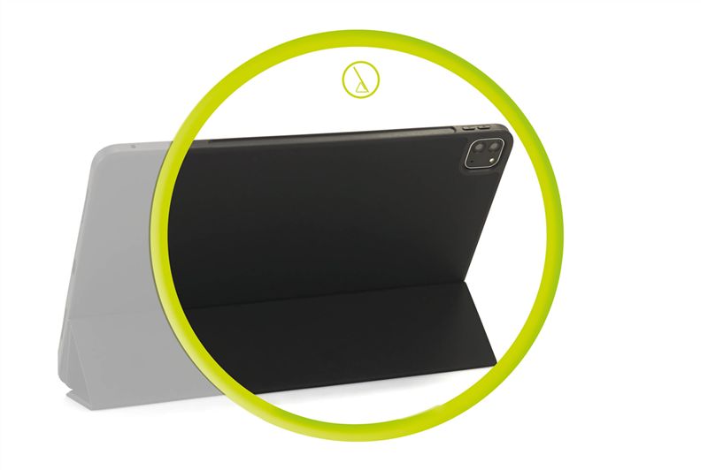Βάση Tri-Fold δύο θέσεων: Το μπροστινό κάλυμμα αναδιπλώνεται προσφέροντας δύο γωνίες θέασης: μια χαμηλή κλίση για άνετη πληκτρολόγηση και σχεδίαση, και μια πιο όρθια γωνία για παρακολούθηση βίντεο και συμμετοχή σε βιντεοκλήσεις.