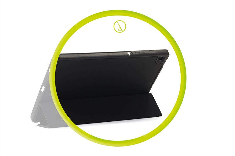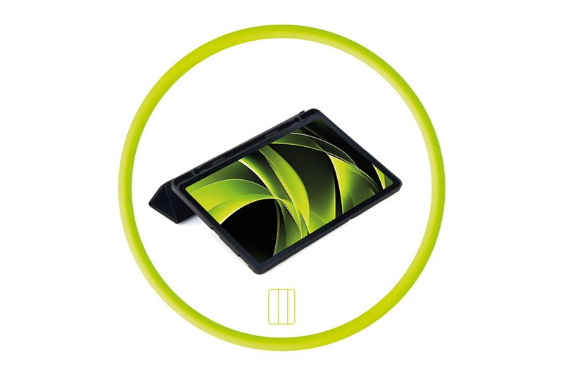 Μεταβλητή Βάση Στήριξης: Το μπροστινό κάλυμμα αναδιπλώνεται δημιουργώντας μια σταθερή βάση δύο θέσεων: μια χαμηλή κλίση για άνετη πληκτρολόγηση και σημειώσεις, και μια πιο όρθια γωνία για την παρακολούθηση βίντεο ή βιντεοκλήσεων.
