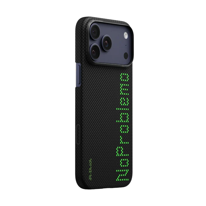 Η κορυφαία συνεργασία της Pitaka με το luxury streetwear brand Aries από το Λονδίνο φέρνει τη συλλεκτική θήκη No Problemo στο iPhone 17 Pro Max. Αυτή η θήκη αποτελεί έναν μοναδικό συνδυασμό υψηλής ραπτικής και αεροδιαστημικής τεχνολογίας, ενσωματώνοντας την πρωτοποριακή τεχνολογία Lumintex™. Αν αναζητάτε μια πολυτελή θήκη αραμιδίου που λάμπει στο σκοτάδι και διατηρεί το λεπτό προφίλ της συσκευής σας, η έκδοση Aries είναι η απόλυτη επιλογή.