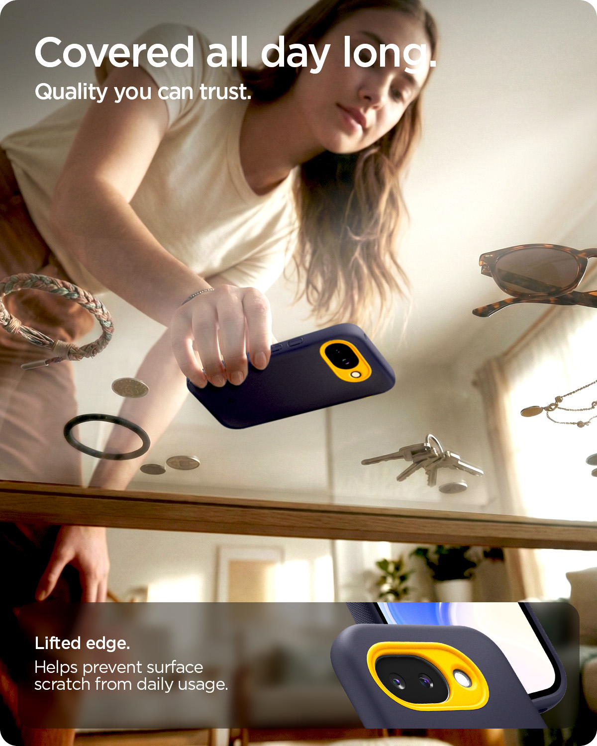 Προστασία Military Grade: Ενσωματώνει την τεχνολογία Air Cushion της Spigen στις γωνίες, απορροφώντας αποτελεσματικά τους κραδασμούς από πτώσεις και χτυπήματα.