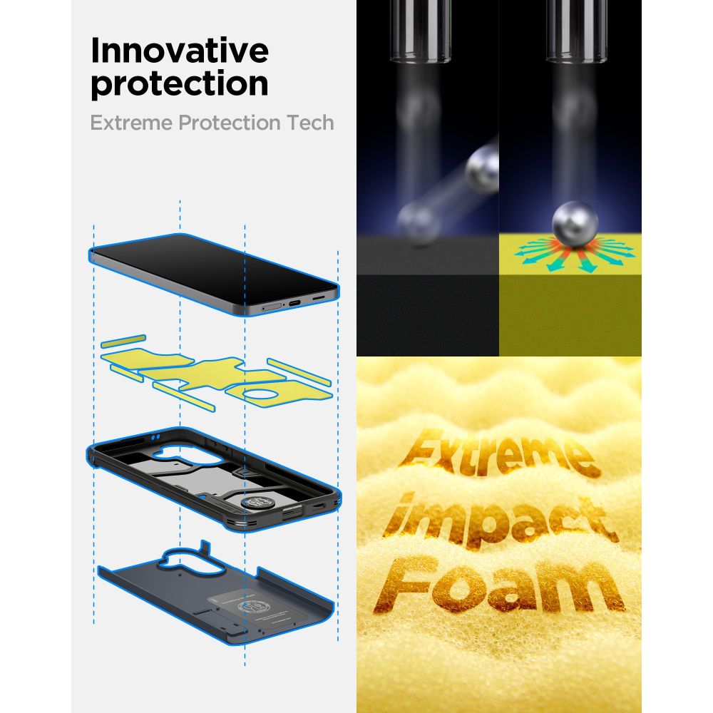 Extreme Dual-Layer Protection: Η θήκη διαθέτει υβριδική κατασκευή δύο επιπέδων, με ένα εσωτερικό σώμα από εύκαμπτο TPU για απορρόφηση κραδασμών και ένα εξωτερικό σκληρό κέλυφος από πολυανθρακικό (PC) για προστασία από ισχυρά χτυπήματα.