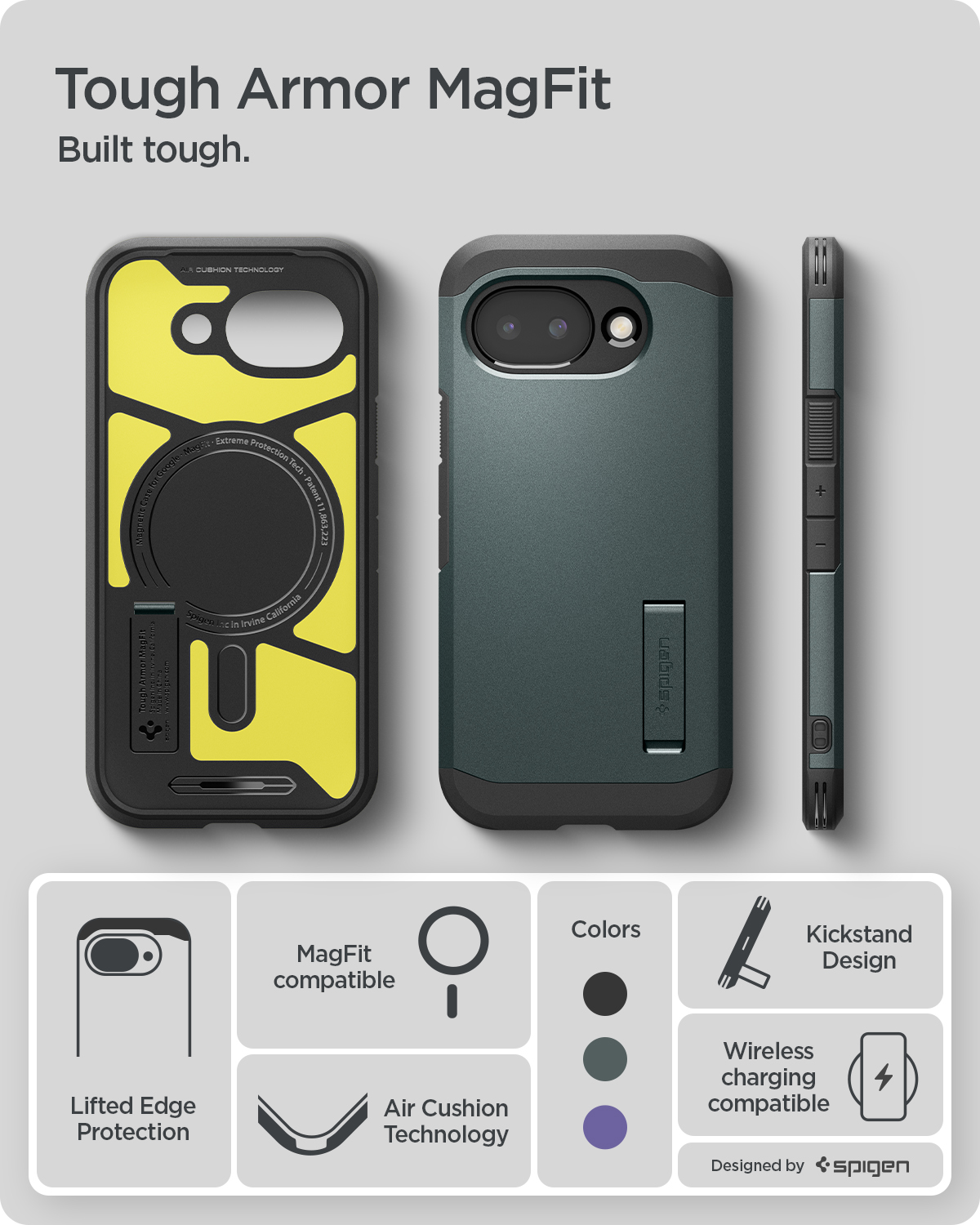 Εξασφαλίστε την απόλυτη θωράκιση για τη συσκευή σας με τη θήκη για το Google Pixel 10a από τη σειρά Tough Armor MagSafe της Spigen. Αυτή η ανθεκτική θήκη διπλής επίστρωσης σε βαθύ Abyss Green χρώμα προσφέρει την πιο ολοκληρωμένη προστασία της αγοράς, ενσωματώνοντας παράλληλα την τεχνολογία MagSafe. Αν αναζητάτε μια θωρακισμένη θήκη με βάση στήριξης που να αντέχει σε ακραίες συνθήκες χωρίς να θυσιάζει τη λειτουργικότητα, η Spigen Tough Armor είναι η ιδανική επιλογή.
