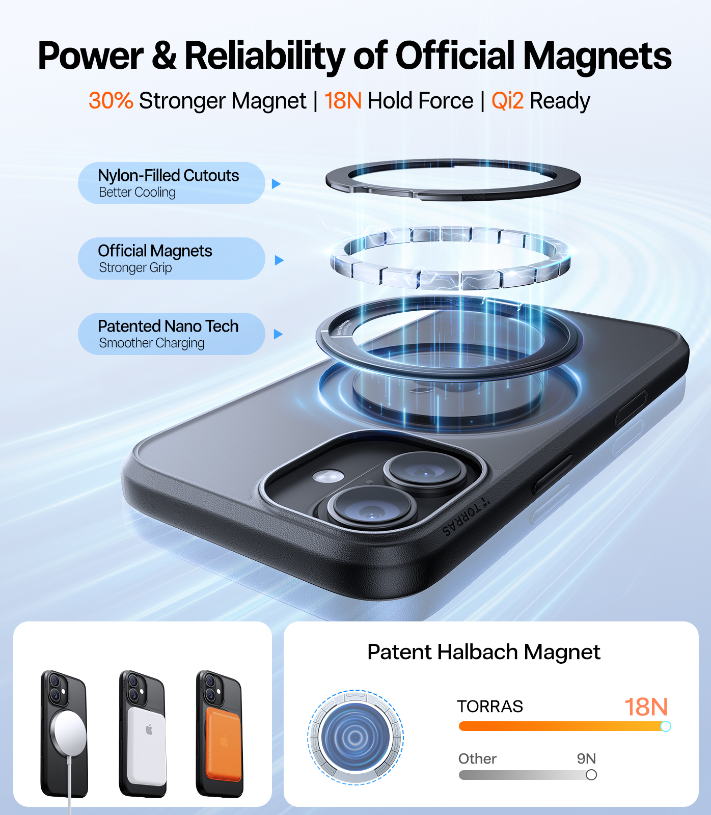 Πανίσχυρο MagSafe (18N): Με μαγνητική δύναμη πρόσφυσης που φτάνει τα 18N, η θήκη εξασφαλίζει ακλόνητη σύνδεση με φορτιστές MagSafe, βάσεις αυτοκινήτου και αξεσουάρ. Ταυτόχρονα, επιτρέπει την ταχύτατη ασύρματη φόρτιση χωρίς απώλειες ενέργειας.