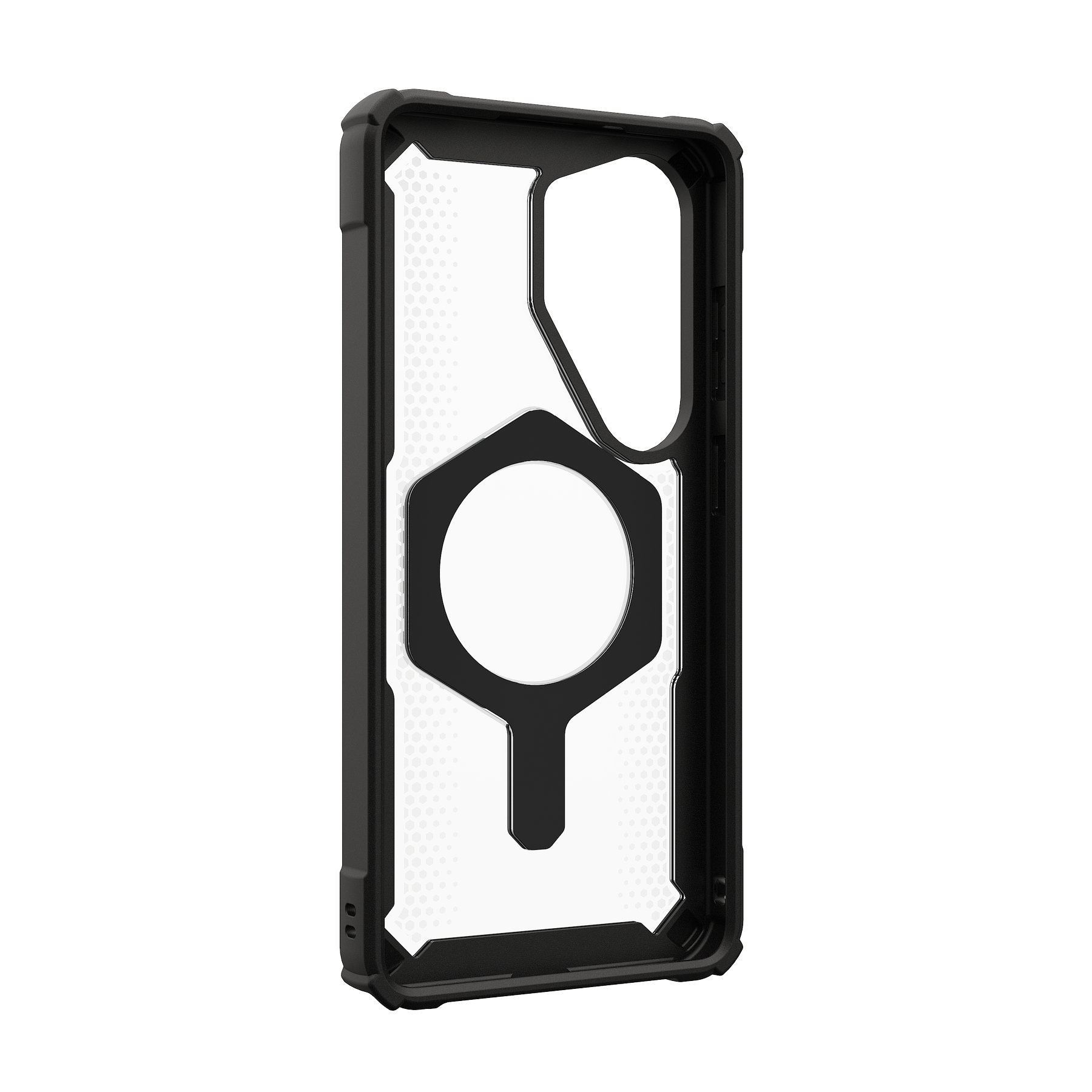 Ημιδιάφανο Design: Η πλάτη σε Black Clear επιτρέπει στο αυθεντικό design του S26 Ultra να φαίνεται, ενώ το εξαγωνικό μοτίβο εσωτερικά ενισχύει την ακαμψία και την απορρόφηση κραδασμών.