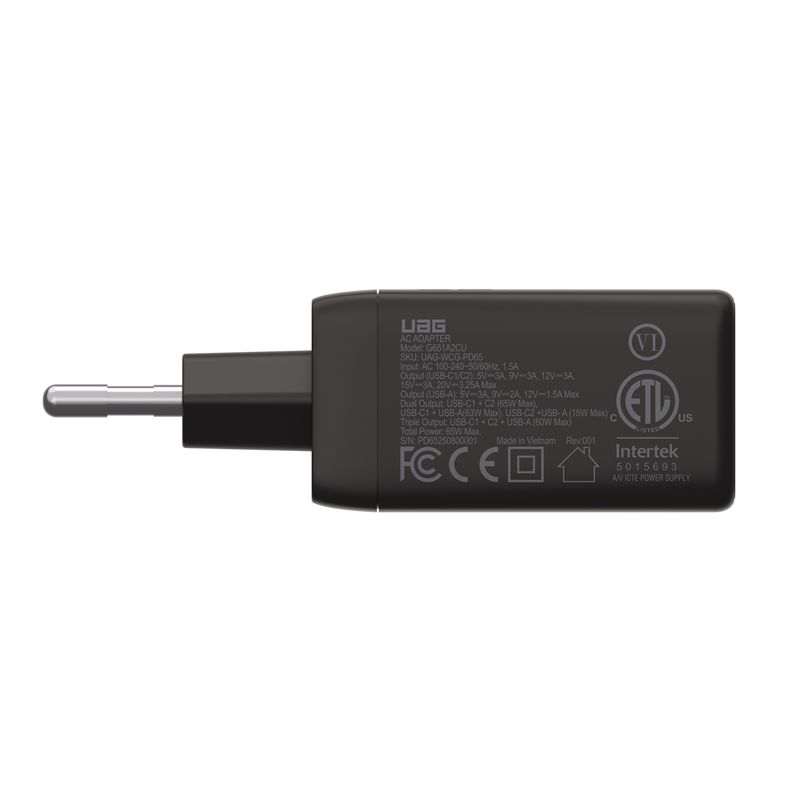 UAG SRGE 65W 3Port ((2)USB-C (1)USB-A)Wall Charger EU Black (9B443711V4040)