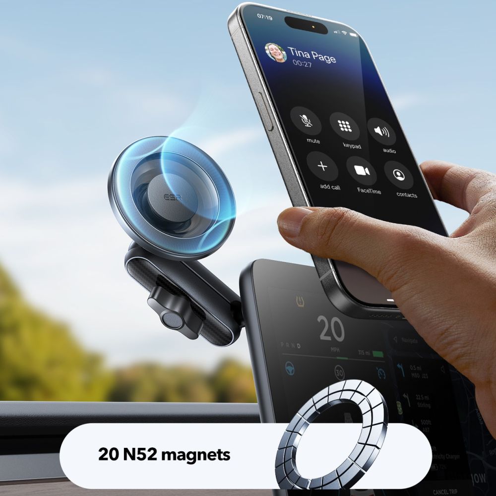 20 Πανίσχυροι Μαγνήτες N52: Η βάση διαθέτει έναν δακτύλιο από 20 μαγνήτες υψηλής ποιότητας N52, οι οποίοι προσφέρουν εξαιρετικά ισχυρή έλξη, επιτρέποντας την ακαριαία τοποθέτηση και αφαίρεση της συσκευής με το ένα χέρι.